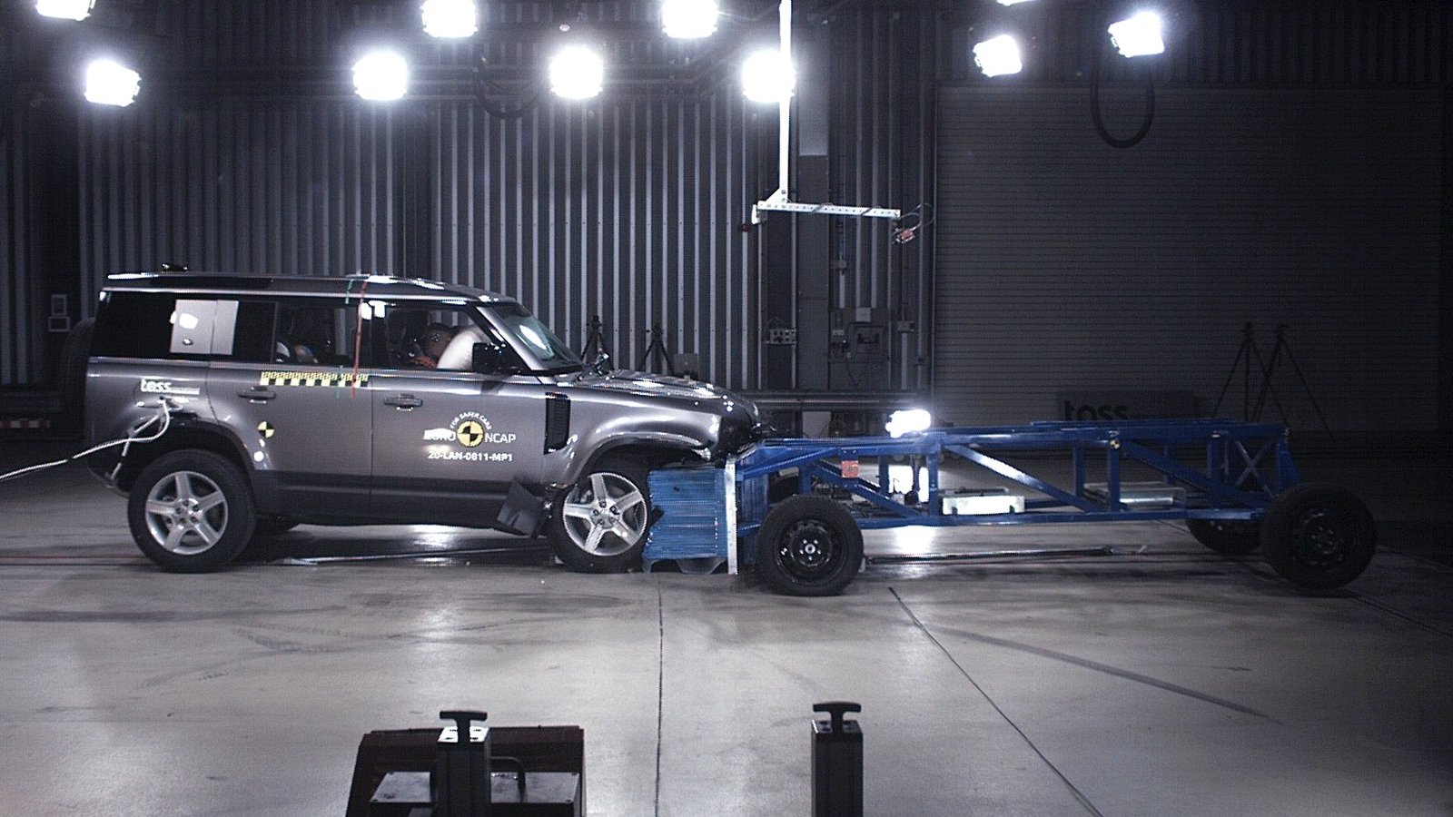 Главная проблема нового Дефендера в том, что он тяжёлый (масса тестового автомобиля — 2408 кг), а за это Euro NCAP теперь снижает оценку в тесте, имитирующем выезд на встречную полосу и столкновение с другим автомобилем. Другой автомобиль — это тележка с установленным на неё деформируемым барьером, и масса этого составного объекта всегда одна — 1400 кг. Соответственно чем тяжелее тестовый автомобиль, тем большую угрозу он представляет для тех, кто может находиться во встречном транспорте. Для тех же, кто едет в Дефендере, серьёзной угрозы встречный краш-тест Euro NCAP не представляет: опасных нагрузок не зафиксировано, а колени водителя и переднего пассажира в протоколе выкрашены в оранжевый цвет из-за риска контакта с твёрдыми деталями приборной панели.