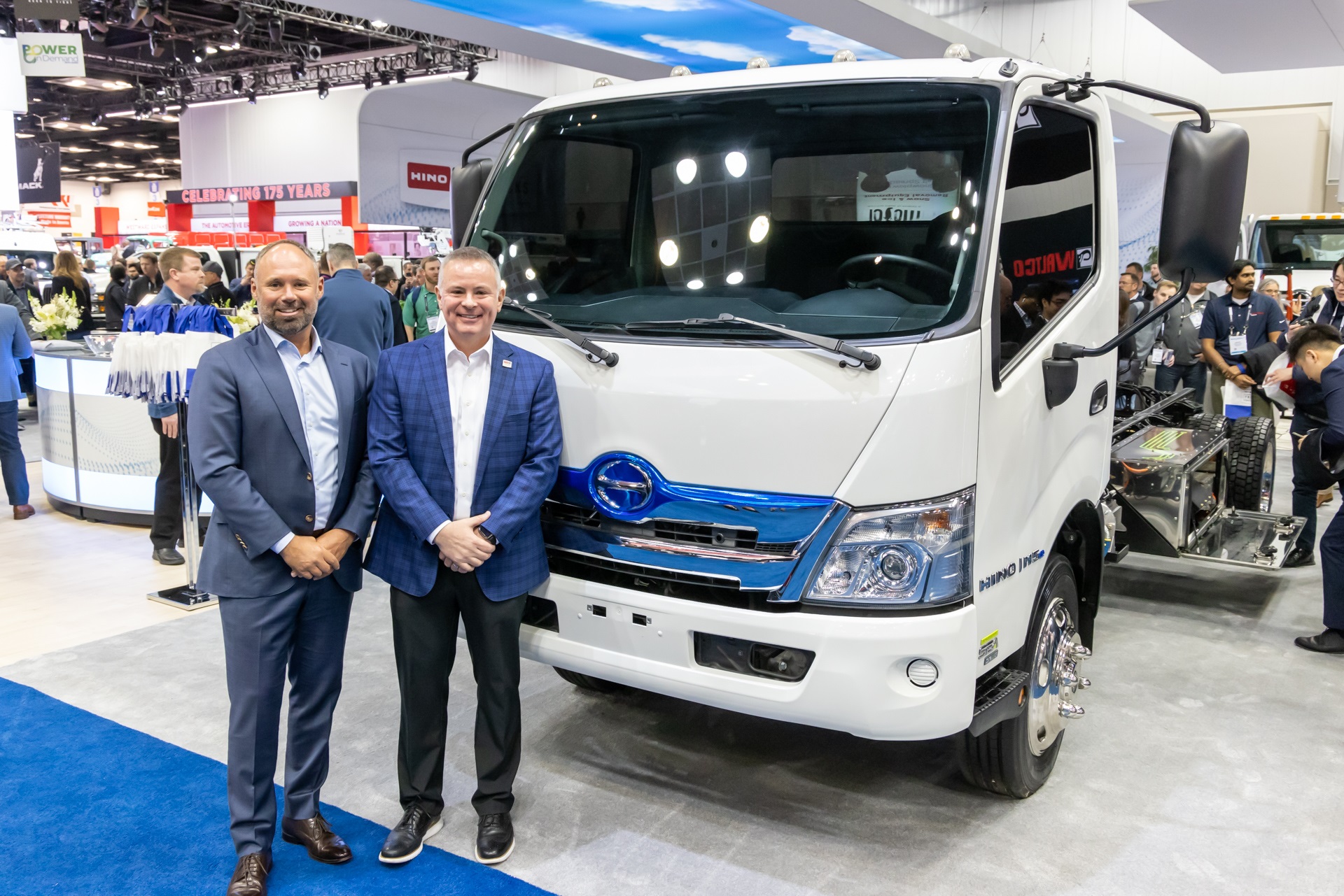 Компанія Hino Trucks розпочне випуск нових електричних вантажівок на своєму заводі в Мінерал Велс (Західна Вірджинія) вже у 2024 році. Перша модель – M5e, з безкапотною кабіною, відноситься до 5-го класу і розрахована на повну масу 8,8 т. Вона оснащена електричною силовою установкою SEA Electric потужністю 80 кВт (пікова 125 кВт) і максимальним крутним моментом 1500 Нм. Її живлять літій-іонні батареї ємністю 148 кВт.год. Запас ходу сягає 300 км. Час до повної зарядки – 8 годин.