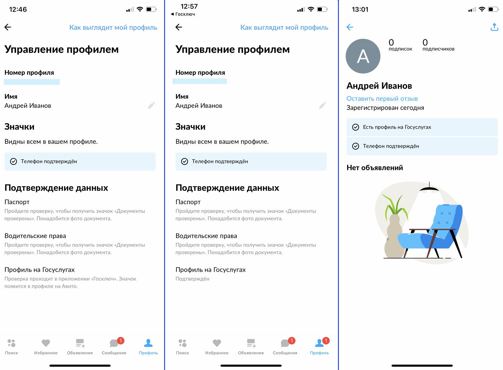 Значок об успешном прохождении верификации появится в профиле на Авито в течение суток после привязки аккаунта на портале Госуслуг.
