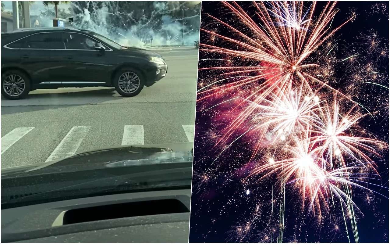 Находящиеся поблизости автомобилисты из Западного Мельбурна (штат Флорида) услышали звук аварии и увидели, как машина въехала прямо в магазин фейерверков.
