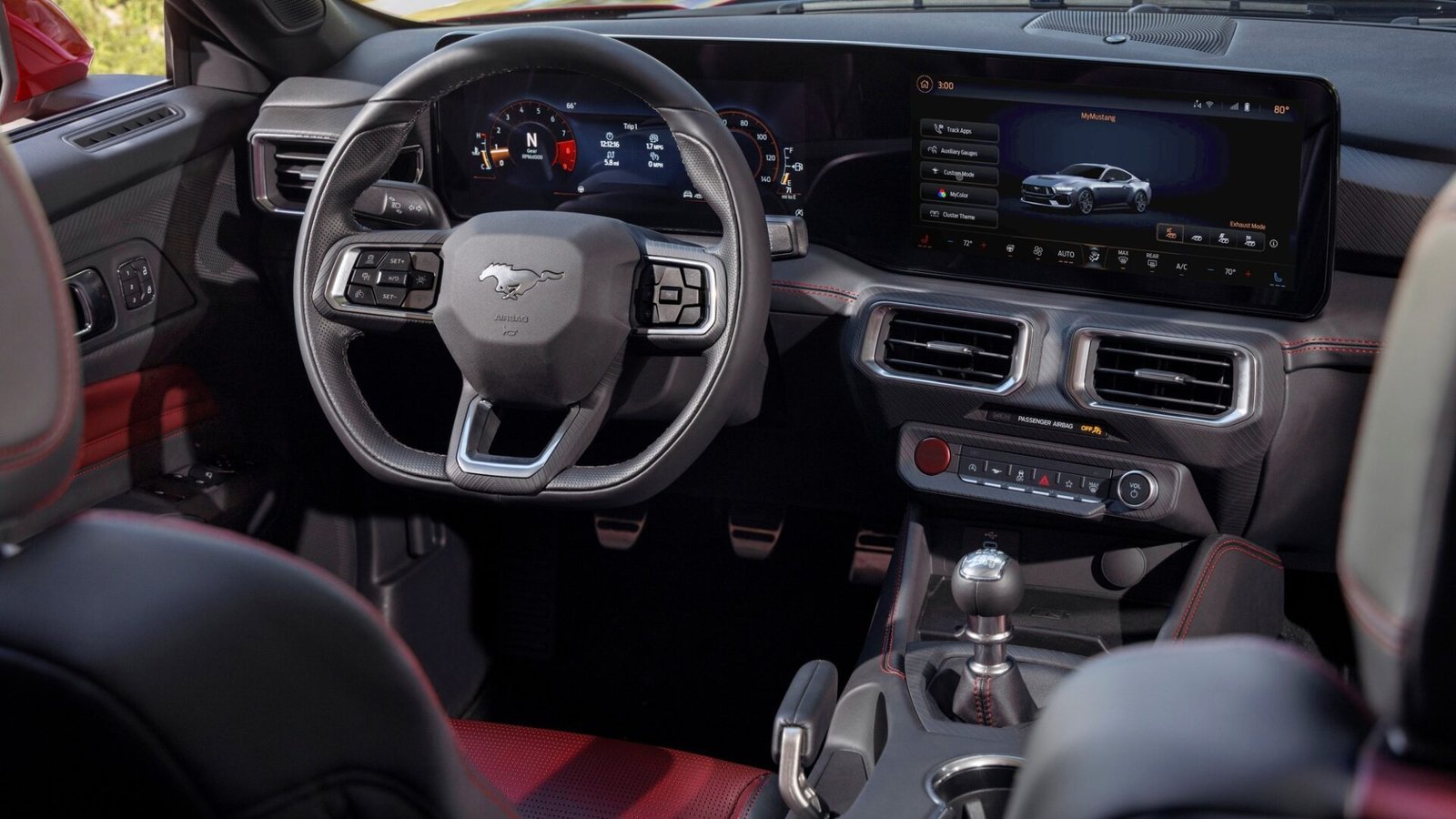 Зато выбор между 6-ступенчатой «механикой» и 10-ступенчатым «автоматом» есть у тех, кто закажет Mustang с 5,0-литровым атмосферным мотором V8 Coyote. У версии GT его отдача выросла с 456 л.с. и 556 Нм до 487 л.с. и 563 Нм, а если заказать опциональную выпускную систему с «прямоточным» клапаном, то звук выхлопа при открытии этого клапана станет ярче, максимальная отдача двигателя увеличится до 493 л.с. и 567 Нм. МКП теперь снабжена системой автоматической подгонки оборотов двигателя при переключениях, которая должна сделать разгон более плавным и быстрым, но динамические характеристики нового Мустанга пока не опубликованы.