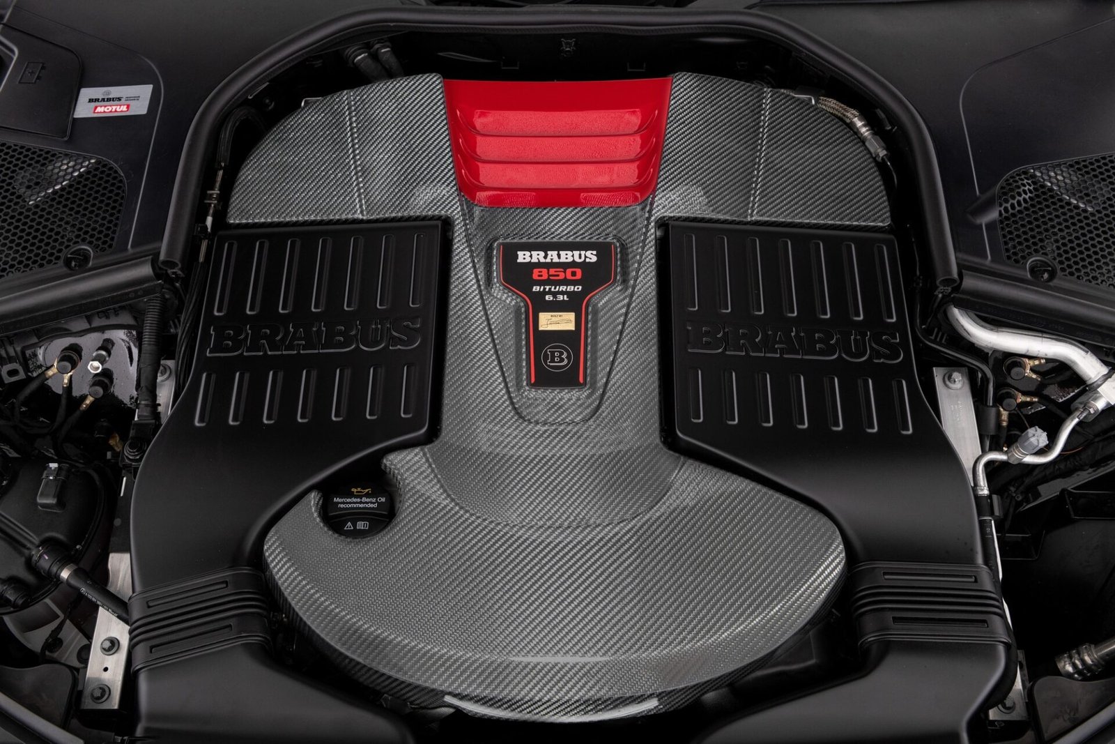 Под капотом — как следует прокачанный 12-цилиндровый двигатель M 279. Рабочий объём увеличен с 5980 до 6233 «кубиков» за счёт нового коленвала, новых шатунов и поршней. Установлены более производительные турбокомпрессоры, новая система впуска и новая система выпуска с перепускным клапаном, обеспечивающим по желанию владельца звериный рык при разгонах. Максимальная отдача со стоковых 612 л.с. и 900 Нм увеличилась до 850 л.с. и 1400 Нм, но потолок крутящего момента программно ограничен на отметке 1100 л.с., чтобы не «убить» мересдесовский 9-ступенчатый «автомат». Время разгона до 100 км/ч сократилось с 4,5 до 4,1 с, максимальная скорость ограничена на отметке 250 км/ч. Подвеска занижена на 20 мм, но, как уверяет Brabus, без ущерба для плавности хода.