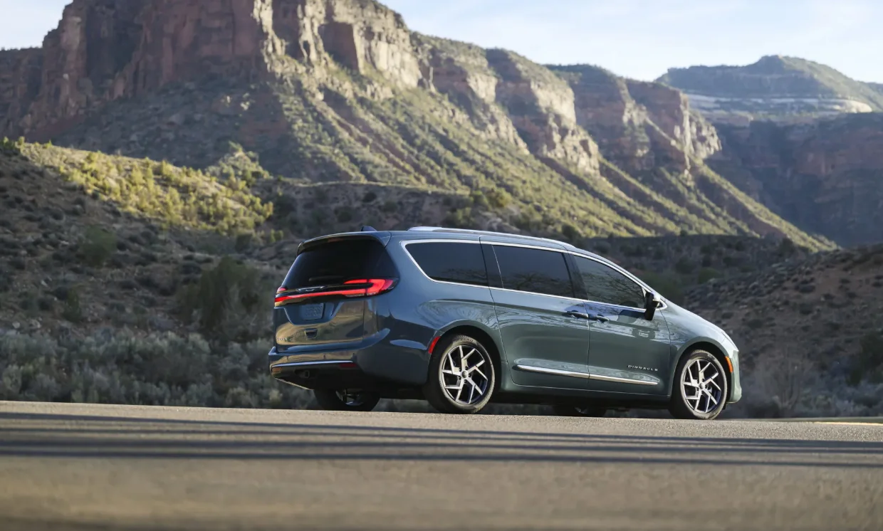 Що стосується салону, то тут теж зміни мінімальні. На кермі встановлена нова емблема у вигляді крила, виконана у відтінку «матовий хром», та використані затемнені елементи декору. Топова комплектація Pinnacle ще отримала обробку в кольорі Blue Agave. А ось приладова панель, центральна консоль, перемикачі і загальна компоновка фактично перенесені з моделі 2021 року. Тобто салон Pacifica виглядає і відчувається як мінівен 2017 року. Але є кілька сучасних функцій: регулювання по висоті дверей багажника, система огляду сліпих зон і гнучка компоновка розважальної системи для задніх пасажирів.