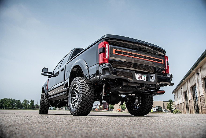 Американская компания FOX Factory Performance Vehicle Development (PVD) и её дочернее тюнинг-ателье Tuscany Motor из города Элкхарт (штат Индиана) представили новый официальный грузовик Harley-Davidson на базе Ford F-250 Super Duty 2023 модельного года: по традиции щедрый декор в стиле Harley-Davidson здесь сочетается с доработанной подвеской.
