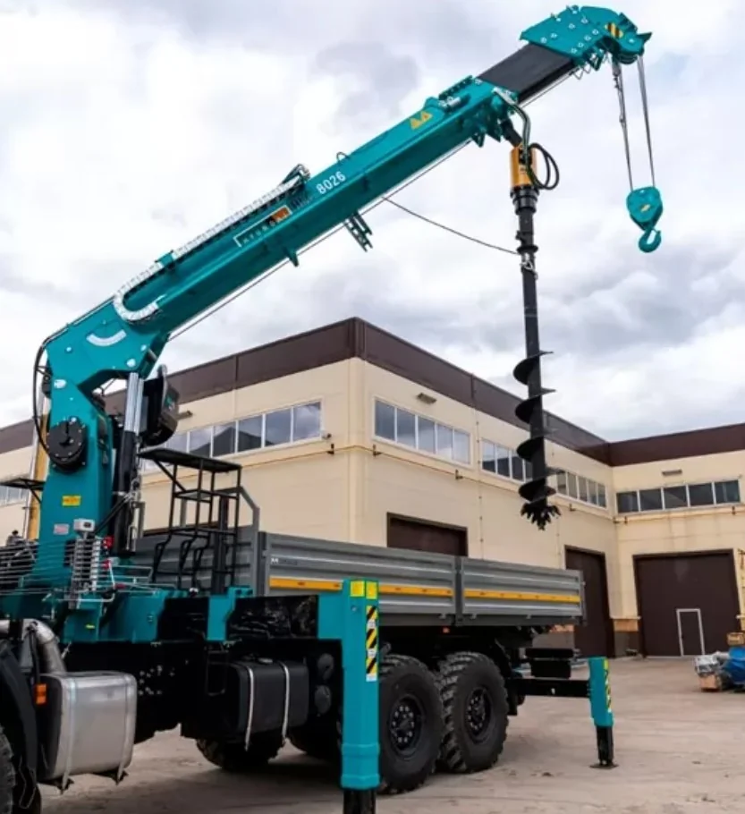Спеціалізовані машини оснащуються тросовим краном-маніпулятором HLC-8026А південнокорейської марки Hyundai Everdigm та бурильним обладнанням PD10HF від австралійського виробника Digga. КМУ з 6-секційною стрілою забезпечує максимальний виліт 19,9 та висоту підйому до 23,3 м. Кут нахилу варіюється від – 16 до 79 град. Швидкість повороту – 1,8 об/хв. Максимальний вантажний момент складає 21,0 тм. Бурильний бур діаметром 450 мм має швидкість обертання 36 об/хв. Крутний момент складає 8490 Нм. Максимальна глибина буріння сягає 4 м.