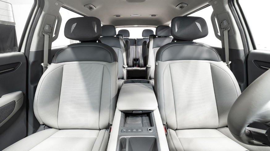 Корейский производитель рассекретил и трёхрядный салон флагманского кроссовера Kia EV9. Автомобиль будет предлагаться в конфигурациях, рассчитанных либо на шесть, либо на семь седоков (второй ряд может представлять собой либо диван на троих, либо пару отдельных кресел). При этом сидения второго ряда могут поворачиваться на 180 градусов, в результате пассажиры могут взаимодействовать с теми, кто расположился на заднем двухместном диванчике.