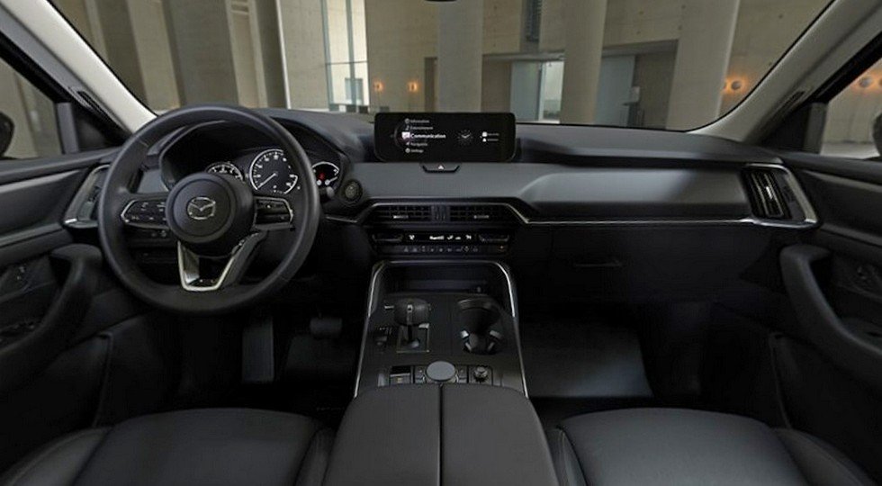 Всего у Mazda CX-90 одиннадцать вариантов исполнений. Кроссовер по умолчанию имеет систему KPC (Kinematic Posture Control; позволяет уменьшить крены в поворотах), системы выбора режимов движения, автоторможения, мониторинга «слепых» зон и слежения за разметкой. Самый дешевый CX-90 – это также 19-дюймовые колеса, восьмиместный салон, мультимедиа-система с экраном диагональю 10,25 дюйма, приборка с 7-дюймовым дисплеем и круиз-контроль. У версий подороже семиместный интерьер (с раздельными креслами во втором ряду), мультимедиа с экраном на 12,3 дюйма, аналогичного размера полностью виртуальная приборка, панорамная крыша, 21-дюймовые колеса, подогрев сидений, адаптивный «круиз», камеры кругового обзора и расширенный комплекс электронных ассистентов (например, есть система удержания в полосе). В арсенале топового кросса – шестиместный салон (между сиденьями второго ряда установлена массивная консоль) и отделка дорогими материалами (кожа наппа и деревянный шпон).