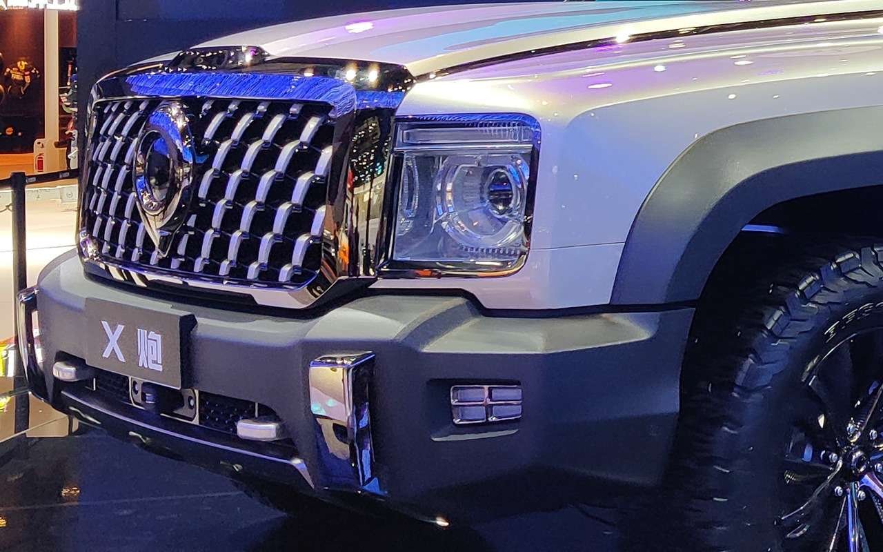 Чтобы втиснуть третью ось, Great Wall удлинила кузов пикапа, а также увеличила его дорожный просвет. У прототипа нет передних и задних колесных арок, но это просто потому, что пока их не сделали, а не потому, что их не будет в принципе.