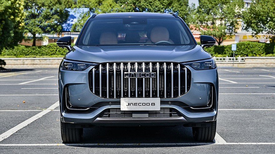 Jaecoo J8 представляет собой Chery Tiggo 9 с иными логотипами и шильдиками. Напомним, флагманский кроссовер Чери был рассекречен ещё в феврале текущего года. Модель с индексом J8 получила массивную радиаторную решётку, с вертикальными хромированными планками (но без дополнительной окантовки, как у близнеца от Chery). При этом фары визуально сливаются с «грилем» через тонкие «перемычки».