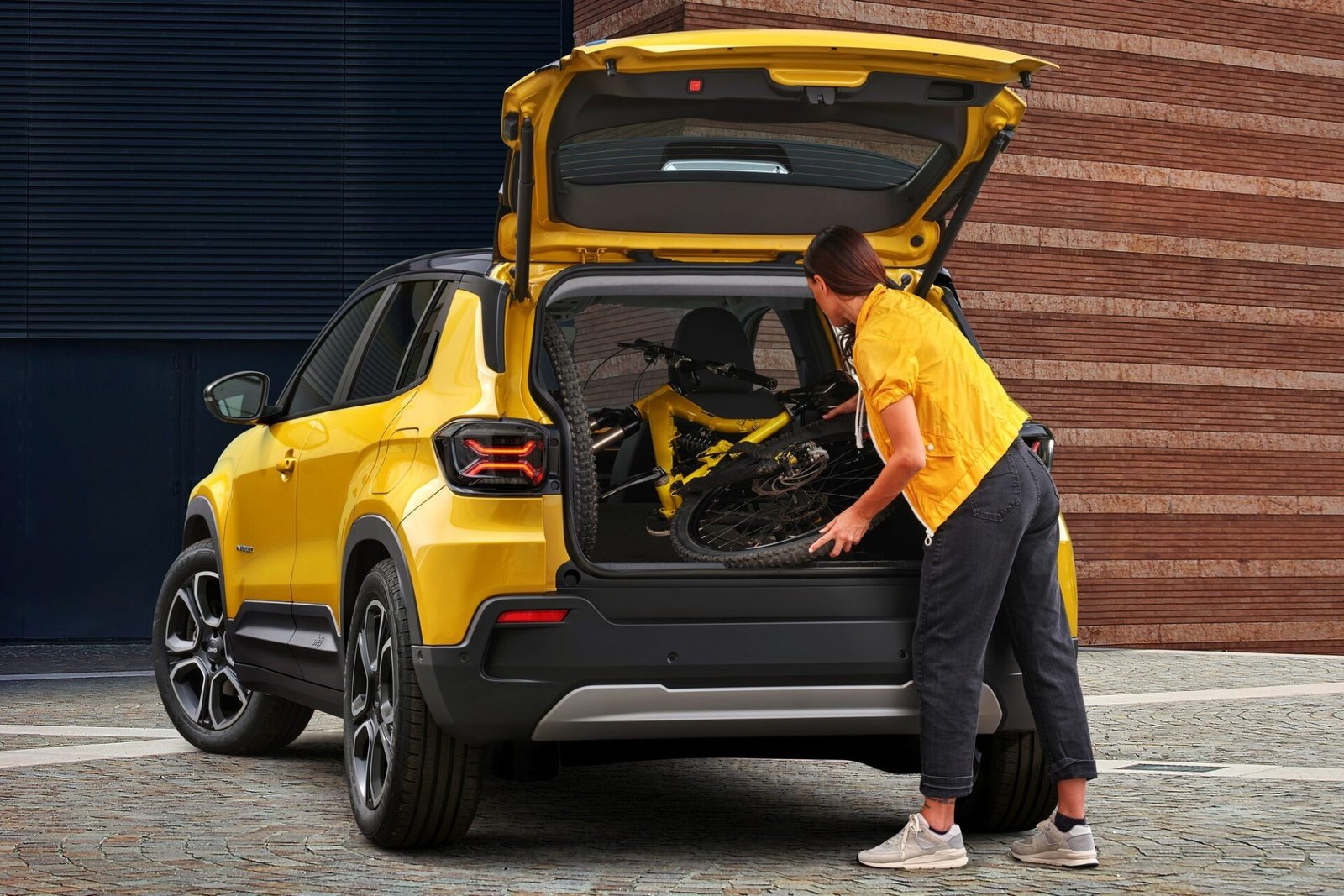 Впервые опубликованы фотографии салона Jeep Avenger, здесь основная ставка сделана на практичность. Под крашеной в цвет кузова трубой передней панели есть длинная открытая полка для вещей. Рядом с кнопочным селектором режимов трансмиссии имеется глубокий 34-литровый бокс со складной крышкой, в нём же покупатель найдёт зарядные разъёмы для гаджетов. Щиток приборов — полностью виртуальный, 7- либо 10,25-дюймовый. Мультимедийный сенсорный экран имеет диагональ 10,25 дюймов. Для передних сидений можно заказать электропривод регулировок и массажёры, а для крышки багажника — электропривод с активацией «пинком» (взмахом ноги под задним бампером).