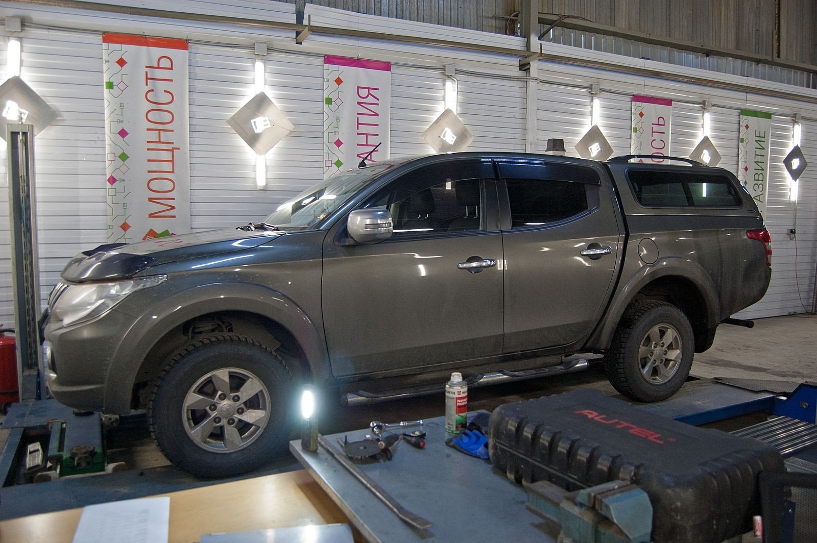 С подножками ситуация следующая: в своё время инженеры совершили очень странный поступок, прикрепив их кронштейны к кузову заклёпками. Естественно, заклёпки со временем стали отваливаться, а вся конструкция – болтаться. В Mitsubishi на это дело отреагировали быстро и провели отзывную кампанию, в ходе которой меняли эти заклёпки на болты. Правда, владелец нашей машины этого благого дела не дождался и поставил болты сам. А на первом же ТО мастера дилерского центра это заметили и поменяли болты ещё раз раз. В этот раз – на фирменные. Если встретите L200 с болтающимися подножками, не переживайте – решение есть. Правда, хром с них всё равно будет облезать, а сами они – потихоньку ржаветь.