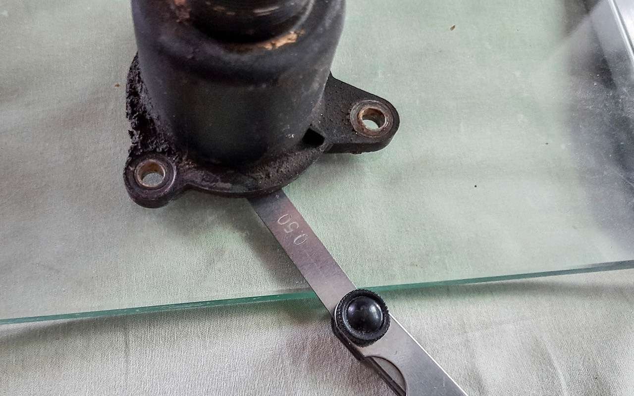 Заодно проверил состояние старого пластмассового патрубка. И обнаружил, что привалочную плоскость повело примерно на 0,5 мм. Причина — недостаточная жесткость пластмассовой детали… и три предыдущие замены термостата. При такой кривизне даже новая прокладка могла не обеспечить герметичность.