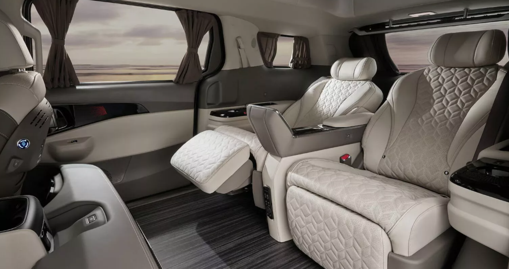 У флагманському варіанті у другому ряду встановлені капітанські крісла з висувними підставками для ніг з функцією масажу, відкидними спинками, відсіком для зберігання взуття. Ще в оснащення входить 21,5-дюймовий монітор, 7-дюймовий сенсорний контролер, встановлений на центральній консолі, слот для бездротової зарядки смартфона та аудіосистема Bose з 12 динаміками, а також холодильник, складні столики і вішаки для одягу.
