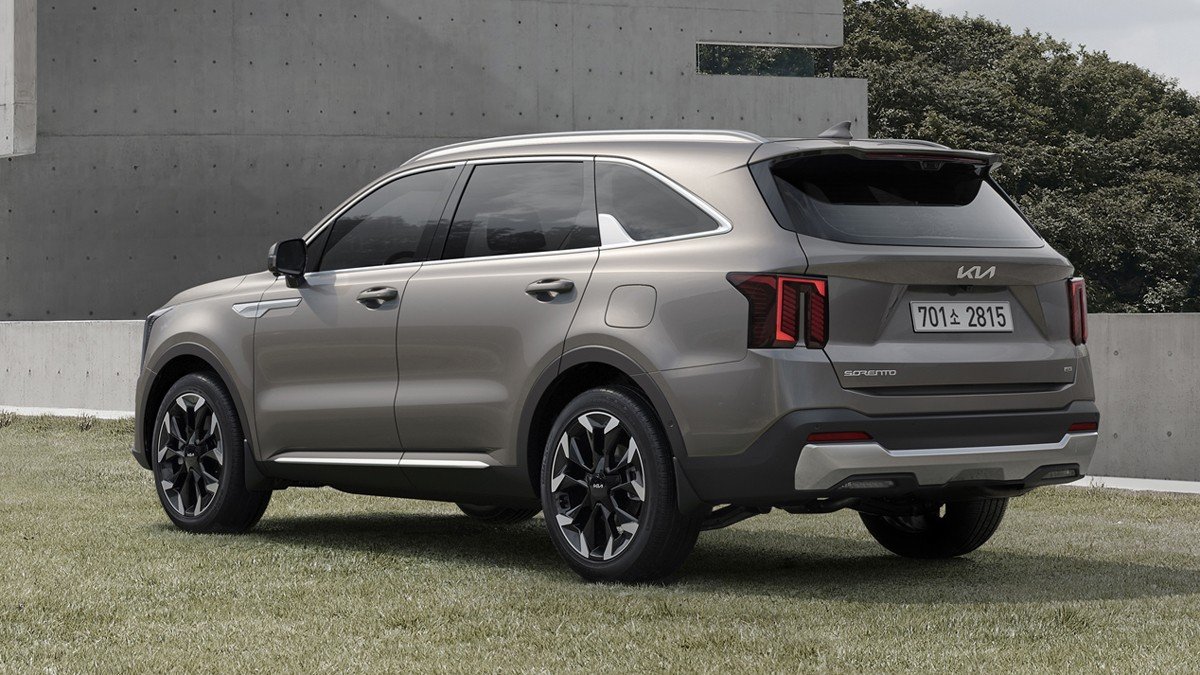 Профиль Sorento в ходе рестайлинга трогать практически не стали, изменился разве что дизайн колёсных дисков. А вот у кормы изменения имеются: так, фонари имеют другой световой рисунок и слегка подкорректированную форму, на багажной двери красуется новый логотип бренда (как и на капоте), а название модели, написанное иным шрифтом, сместили из центра в левый бок. Нижняя часть заднего бампера получила новый дефлектор и по-новому оформленные светоотражатели.