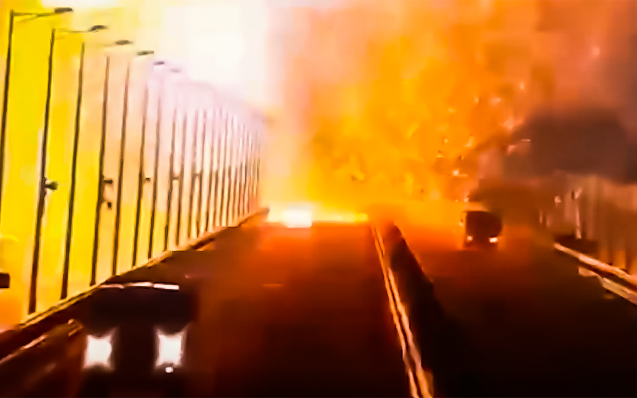 Как сообщили в Национальном антитеррористическом комитете (НАК), причиной пожара и разрушений стал подрыв грузового автомобиля, двигавшегося по Крымскому мосту.
