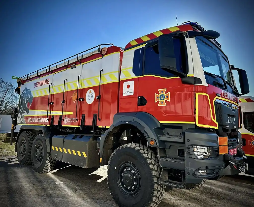 Компанія «Валідус Спецавто» передала для потреб Вищого професійного училища Львівського державного університету безпеки життєдіяльності (м. Вінниця) дві піротехнічні машини важкого типу ПМ-В на шасі MAN TGS (6х6). Реалізація цього проєкту стала можливою завдяки підтримці міжнародних партнерів, зокрема Японського агентства міжнародного співробітництва (JICA). Передані машини стануть частиною практичної підготовки курсантів, які відпрацьовуватимуть розгортання піротехнічних розрахунків та алгоритми роботи з ВНП.