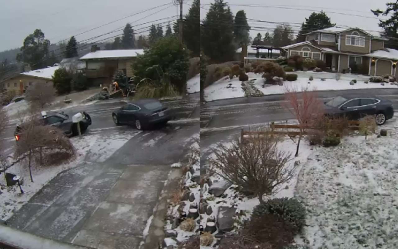 Электрокар утащило вниз по улице, после чего послышался грохот и затряслись провода электропередачи. Сообщается, что никто не пострадал. В комментариях люди пишут, что во время парковки нужно направить колеса в сторону бордюра: тогда машина упрется в препятствие. Впрочем, едва ли это уберегло бы эту Теслу.
