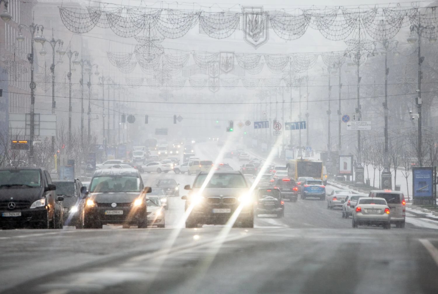 Неблагоприятные погодные условия мгновенно повлияли на ситуацию на дорогах: Киев застрял в автомобильных пробках. В многометровых "пробках" стоят легковушки, автобусы, минибусы и грузовики.