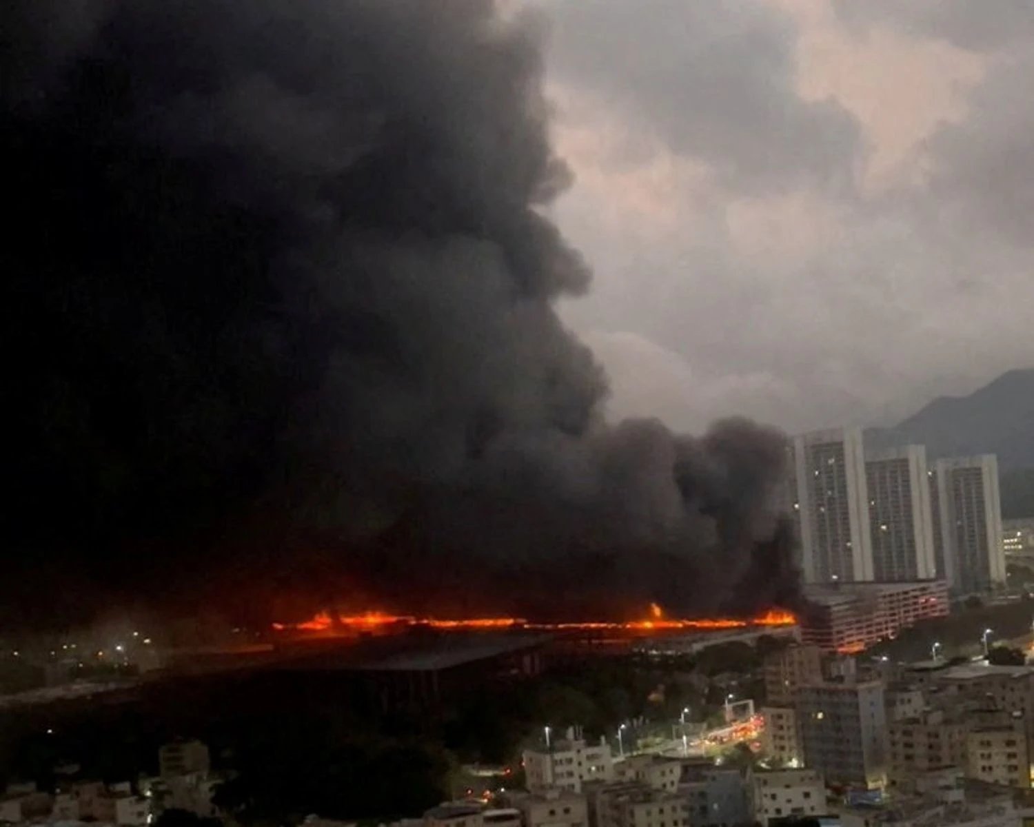 Крупный пожар вызвал густой черный дым, клубящийся в небо, а пламя охватило длинную секцию многоэтажного здания, на место происшествия были направлены пожарные машины и полиция, как показали видео, созданные пользователями, просмотренные и проверенные Reuters.