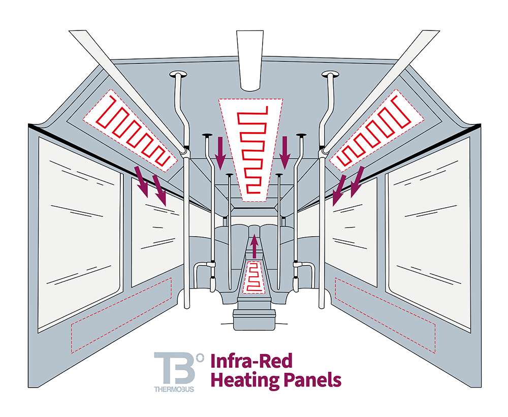 Італійська компанія Thermobus розробила для електричних автобусів інноваційну систему опалення – на основі інфрачервоного випромінювання. Як показує практика, на кондиціювання салону в спекотний літній день зазвичай йде до 10% ємності акумуляторних батарей, а для опалення взимку – і зовсім до 30%. Якщо традиційна система обігріває спочатку повітря, то інфрачервона впливає безпосередньо. Відсутність вентиляторів та повітряних потоків уберігає пасажирів від пилу.