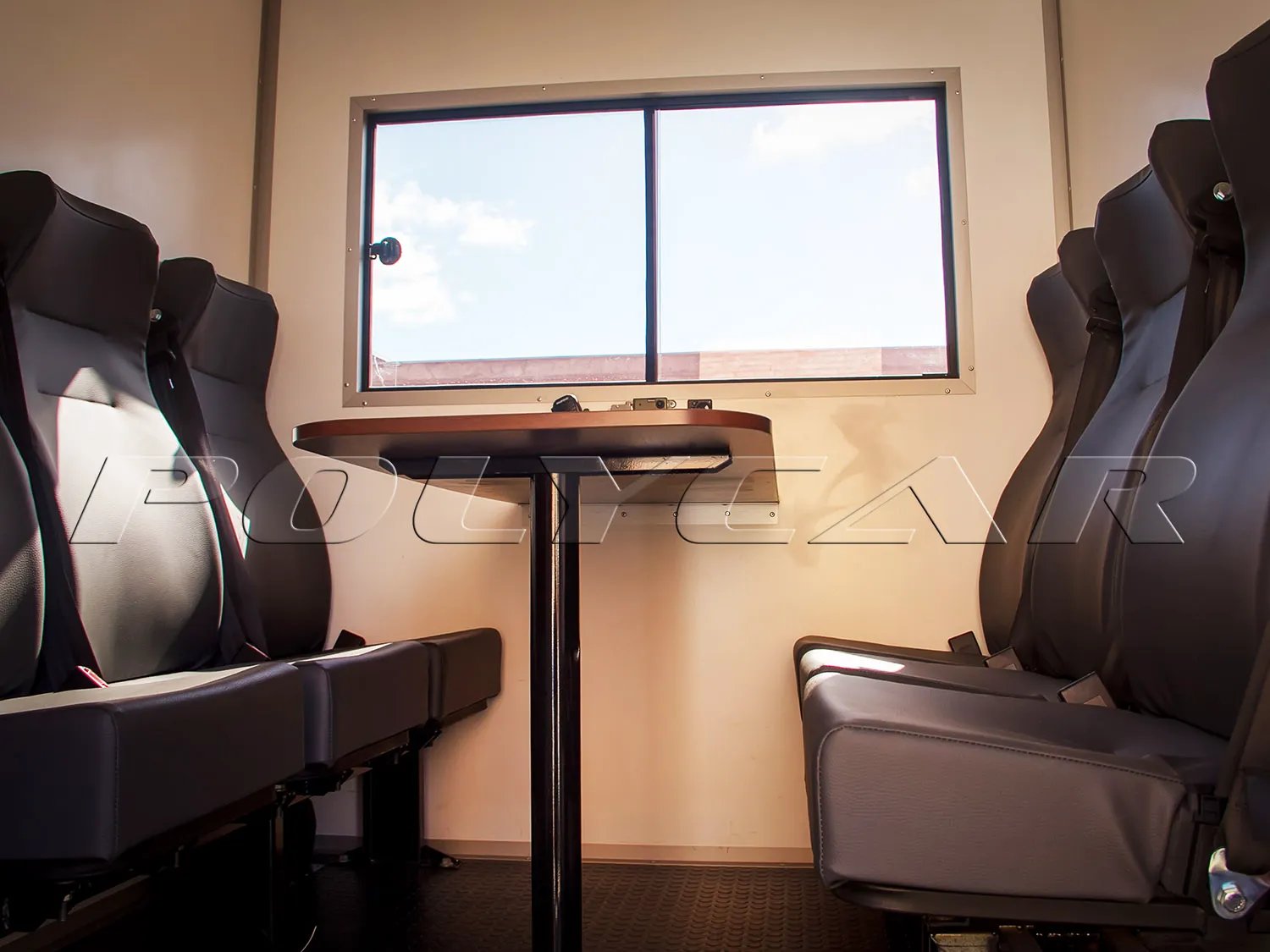 Перший – пасажирський, розрахований на перевезення 6 чоловік. Крім комфортабельних крісел з пасками безпеки тут є стіл, автономний обігрівач від дизельного генератора, система вентиляції, кондиціювання та освітлення. Підлога виготовлена з п’ятишарових сендвіч-панелей.