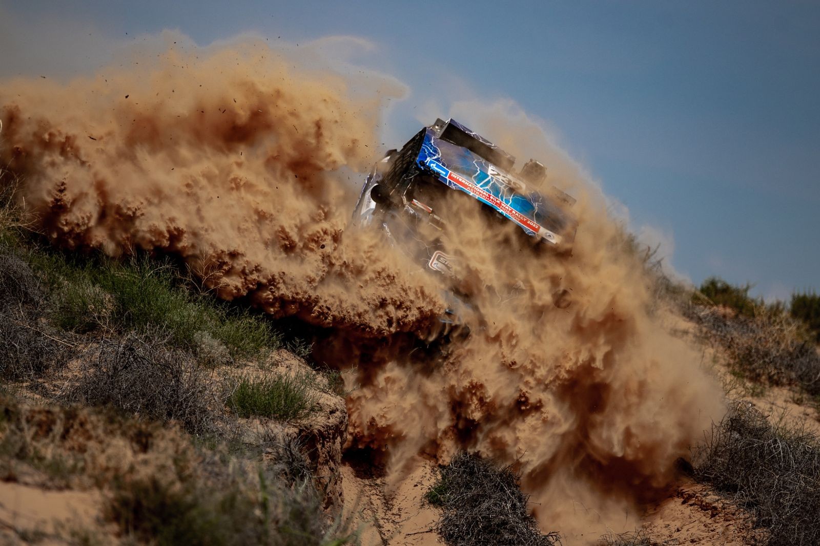 Ну а на следующий день участники начали первый «настоящий» спецучасток протяженностью 226 километров. Мы же сразу отправились на пресс-точку, расположенную в семи десятках километров от старта. Почему именно туда? Прессе, как правило, выдают координаты одной-двух «пресс-точек» на трассе, к которым ведут какие-никакие, но дороги, по которым можно проехать на кроссовере. И тут есть одно важное условие: в каждом пресс-каре есть онлайн-трекер, и в оргкомитете строго следят за тем, чтобы пресс-кары не выезжали на гоночную трассу и не пересекали ее. Выдали такие точки и водителю автомобиля, который возил нас с коллегами. Все хорошо, но… Оказалось, что в районе точки из-за полевой заправки действуют ограничения скорости, а если отойти в пешем строю подальше, то там участки трассы представляют собой «почти прямики», без интересных поворотов и трамплинов. Крутые шпильки около самой точки участники проезжали медленно, «по-пенсионерски». А что делать? Никому не хочется получать штрафное время.