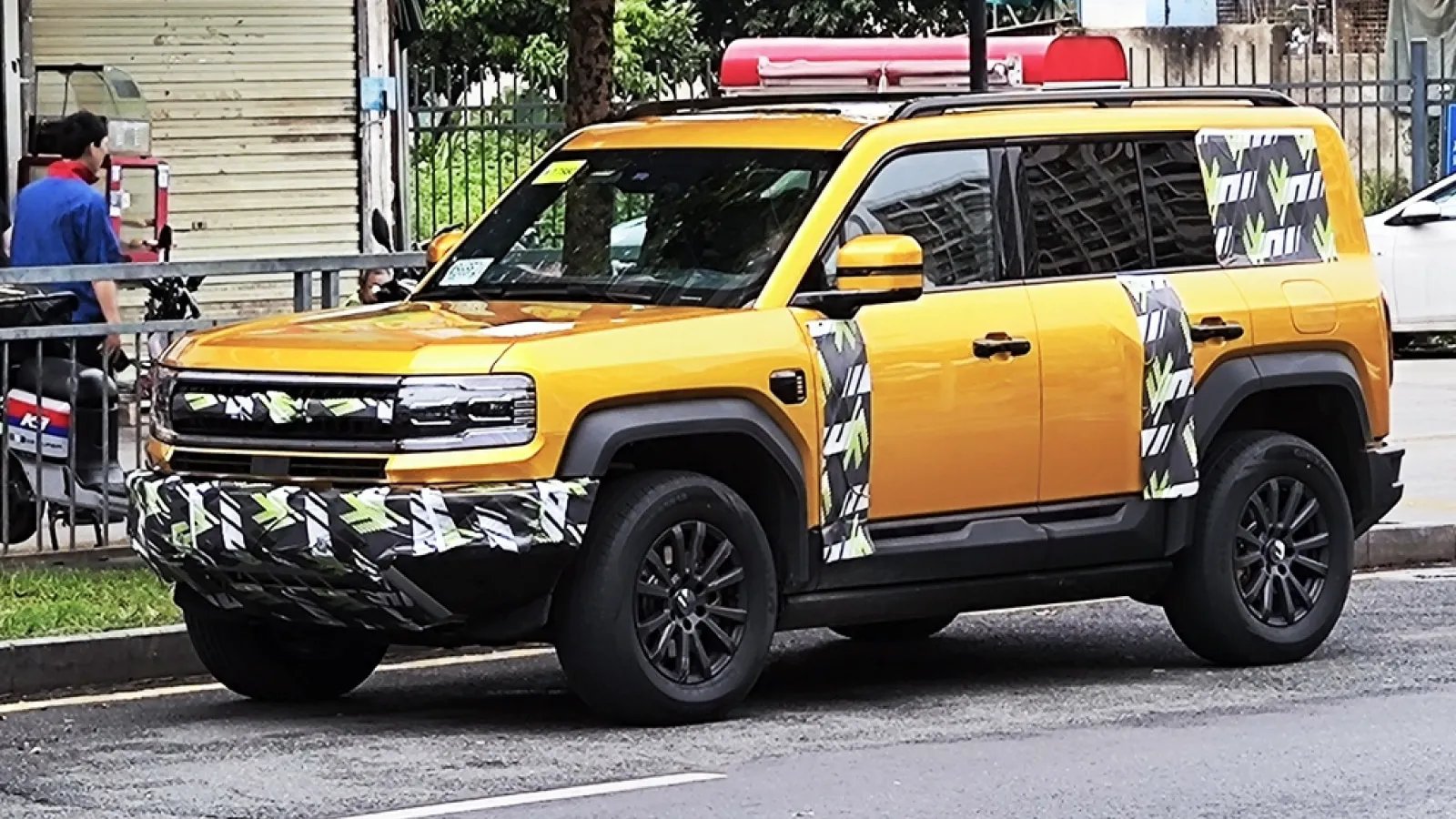 Китайські ЗМІ розтиражували знімки нового флагманського позашляховика BYD — Fang Cheng Bao Leopard 5. Яскраво-жовтий автомобіль, зовні схожий на Land Rover Defender, помітили під час дорожніх тестів.