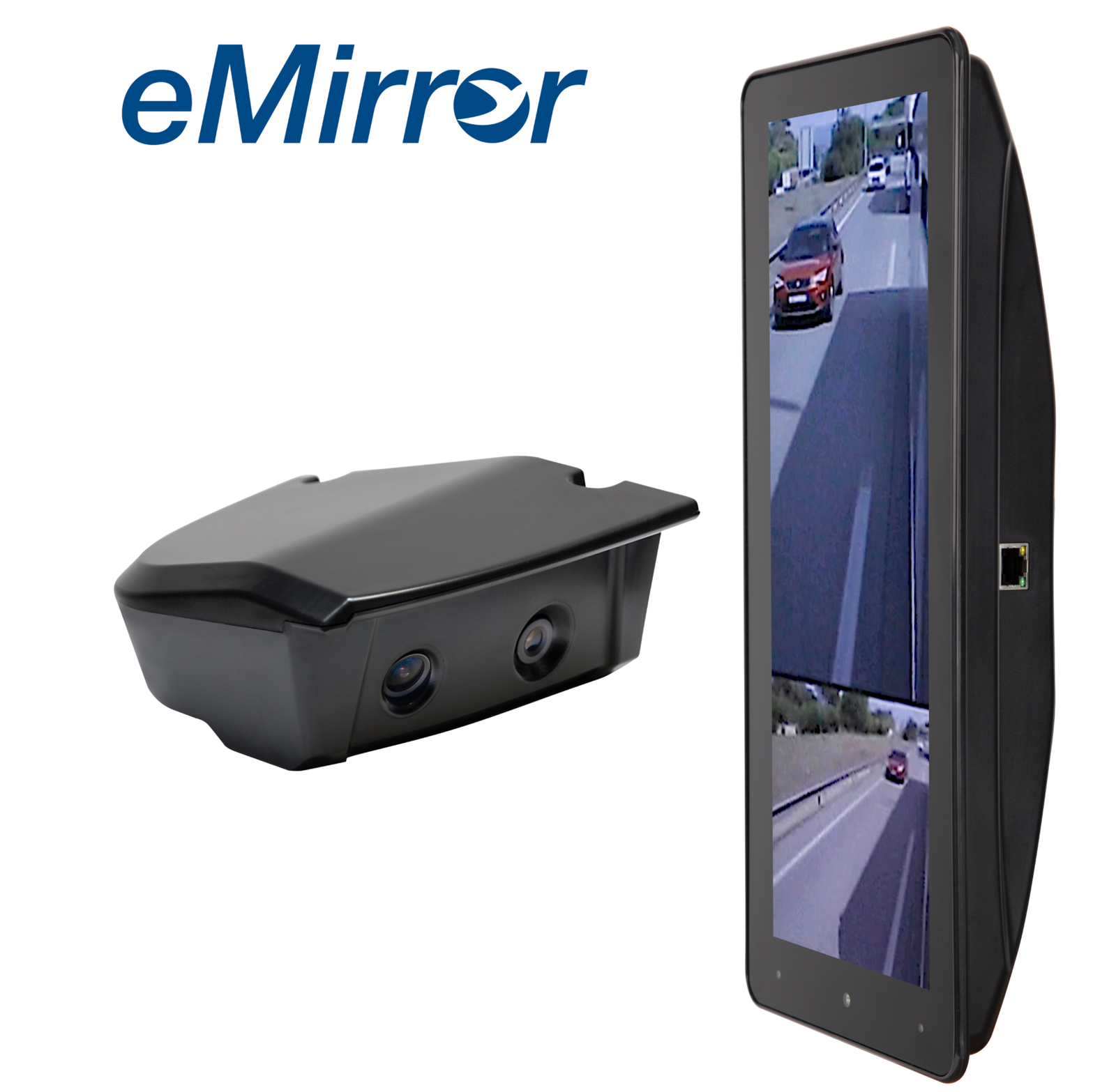 Іспанська компанія Arcol представила новинку на ринку автобусних комплектуючих – систему eMirror, яка замінює звичні зовнішні дзеркала. Вона складається з двох камер HD, що обігріваються, а також двох моніторів з роздільною здатністю 1900 х 720, встановлених на передніх стійках. У результаті покращується оглядовість з місця водія – широкий кут охоплення камер зводить до мінімуму сліпі зони, також підвищується видимість уночі та в негоду.