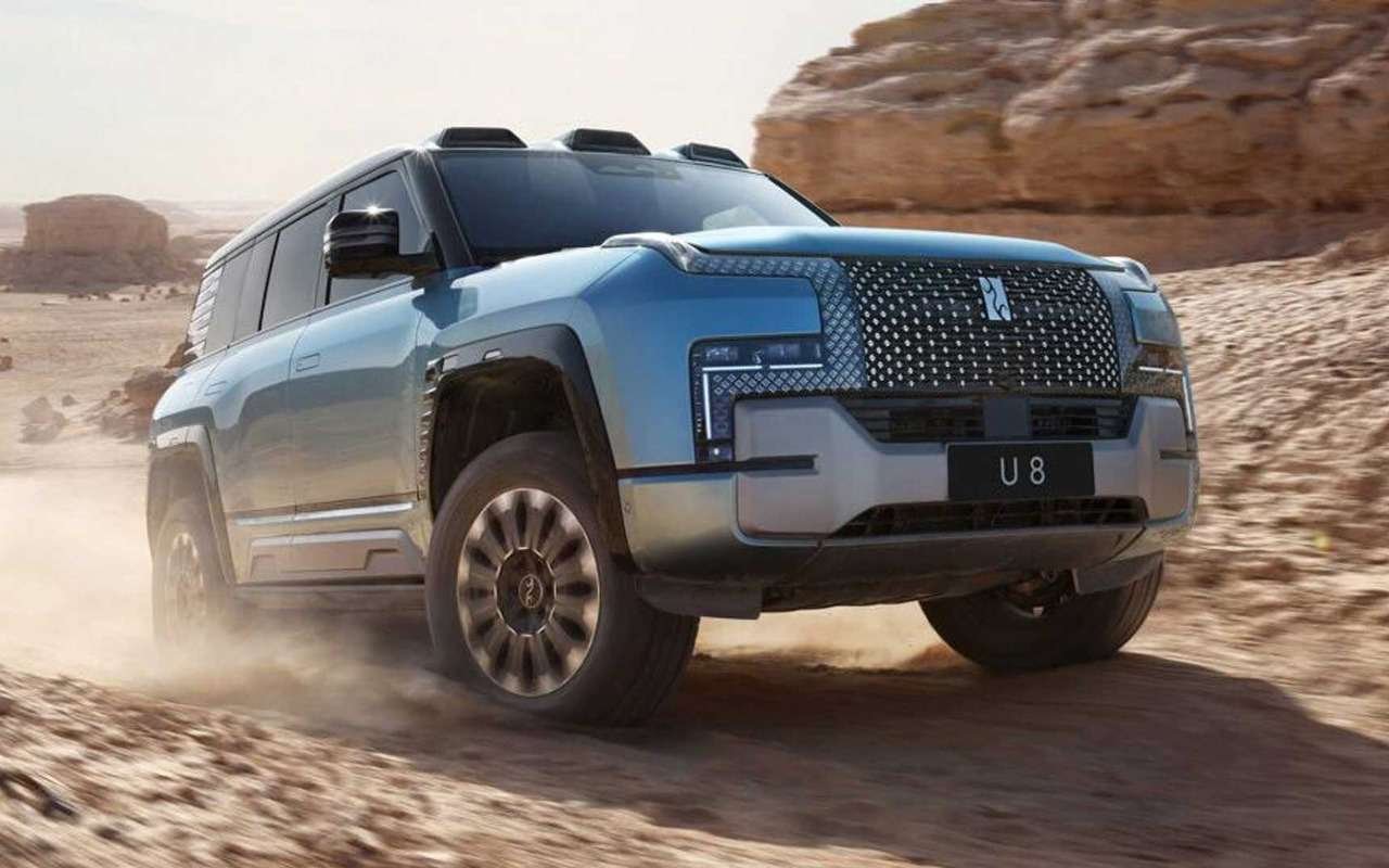 YangWang U8 4×4 имеет раму и оснащен четырьмя электродвигателями — по одному на каждое колесо. Общая мощность электромоторов составляет более 1100 лошадиных сил.