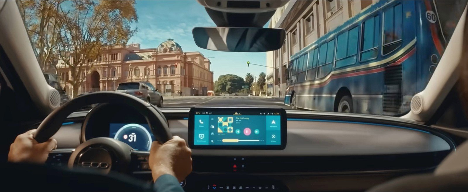 О родстве Fiat 600 с Jeep Avenger свидетельствуют форма бокового остекления (пожалуй, слишком угловатая для общего округлого стиля модели) и детали салона: у Фиата такие же, как у Джипа, руль и горизонтальный мультимедийный экран с диагональю 10,25 дюйма. При этом о бэдж-инжиниринге даже на уровне салона речи не идёт — руководство Stellantis такое не поощряет, поэтому Fiat 600 получил округлую переднюю панель в стиле Fiat 500e, узкий щиток приборов по шарообразным козырьком и, вероятно, много других оригинальных деталей, не показанных в видеоролике.