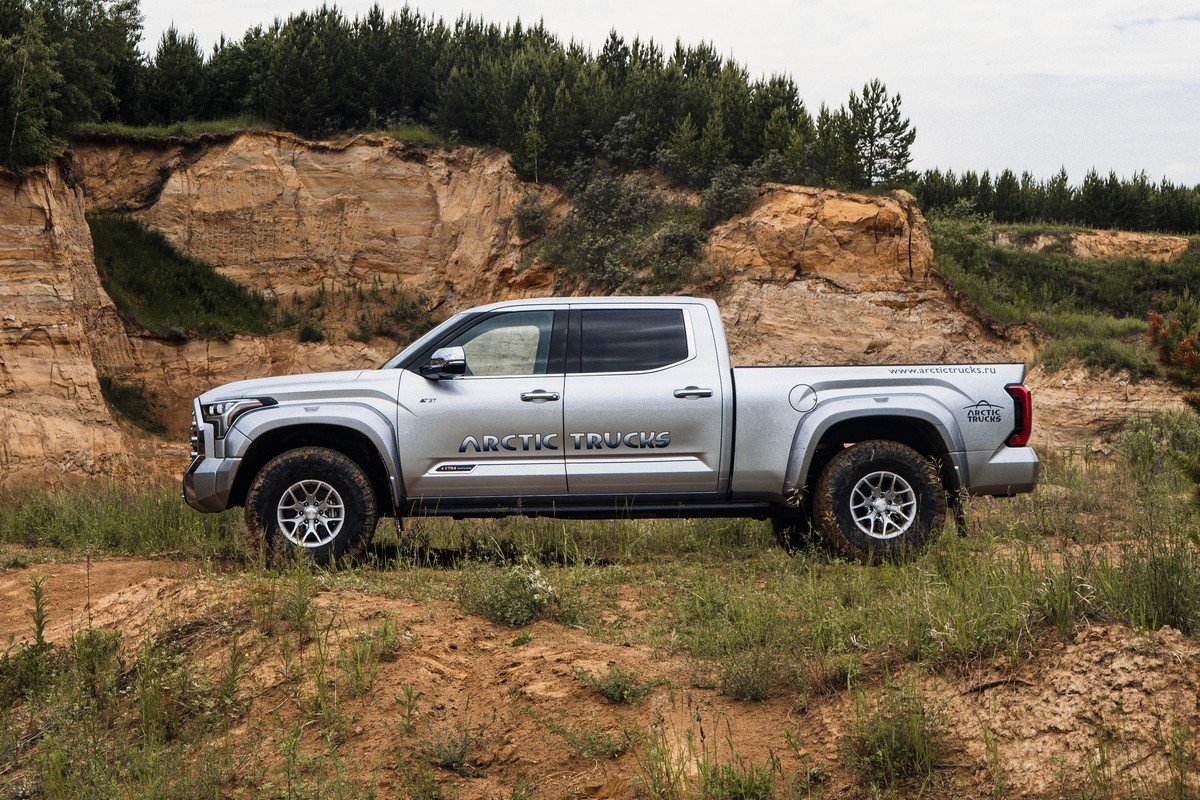 Российское подразделение исландской тюнинговой фирмы Arctic Trucks продолжает свою деятельность: портфолио пополнил пикап Toyota Tundra нового поколения в экстремальной модификации AT37. Напомним, Тундру у нас официально не продавали и до начала всем известных событий, машины же, подвергшиеся доработке, ввезены в страну по схеме параллельного импорта. Причем, как отметили в пресс-службе Арктик Тракс Россия, на складе компании в наличии представлены «все самые популярные комплектации» — включая роскошный вариант Capstone и даже суровую версию TRD.