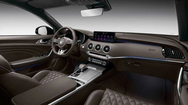 Обновленный Stinger оснастили новейшей головной оптикой на светодиодах с многогранным отражателем и встроенными дневными ходовыми огнями. Фары принято решение затемнить, что украшает спортивный стиль автомобиля. В задней части заметны объединенные светодиодные фары. Также имеются поворотники с уникальным рисунком.