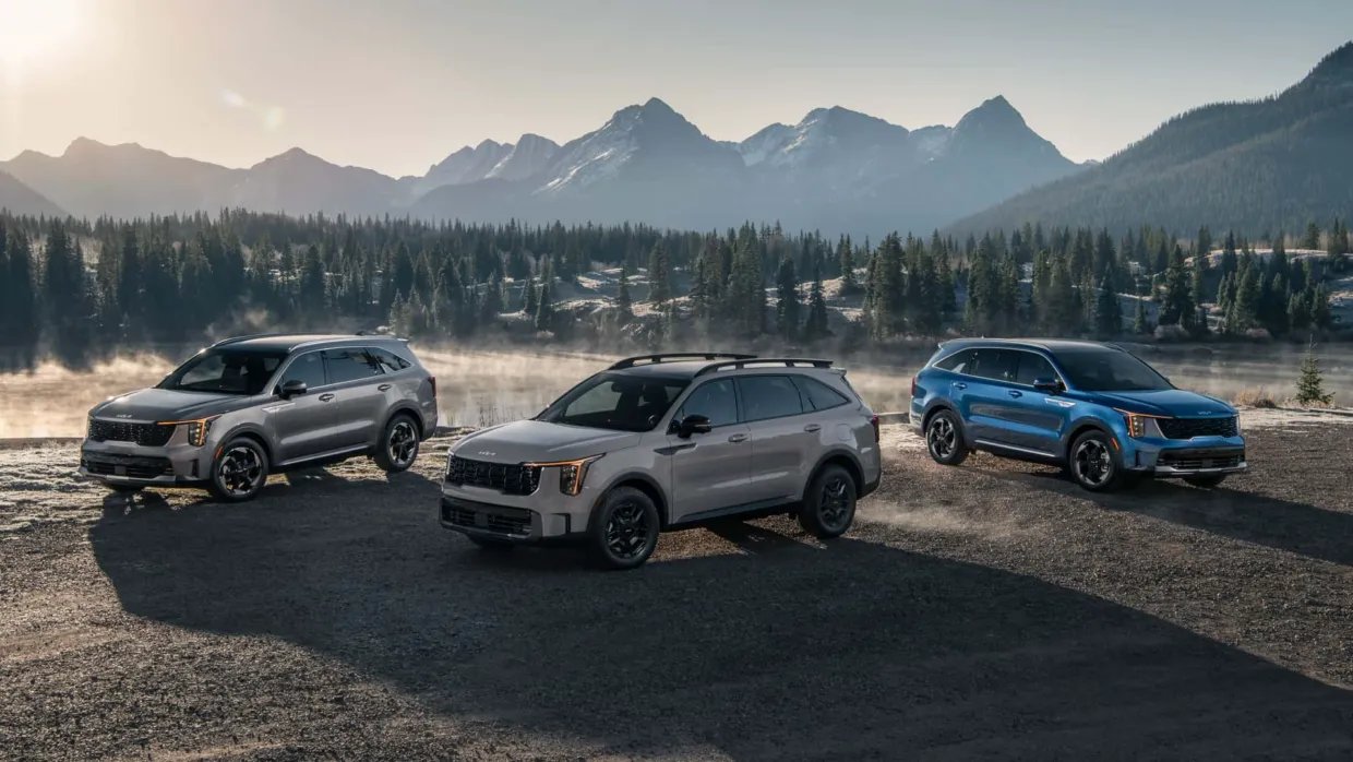 Kia Sorento з «чистими» двигунами внутрішнього згоряння — це рестайлінгова версія попередньої моделі. Деякі елементи дизайну він запозичив у EV9. Зокрема, Т-подібні фари із вбудованими денними ходовими вогнями, що обрамляють знайому решітку радіатора. Логотип Kia переїхав на капот. У новій комплектації X-Pro кросовер отримав 17,0-дюймові колісні диски з позашляховими шинами BF Goodrich.