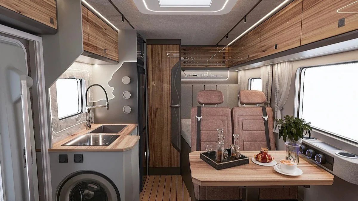 Основою для нього послужив рамний пікап Shanhai Poer, який досягає у довжину 5440 мм. Житлову зону встановили на місці вантажної платформи базової моделі, прихопивши задню частину салону. Інтер’єр «автобудинку» доступний у кількох варіантах оздоблення. На фото, які просочилися у мережу, представлена тільки одна версія. У розпорядженні мешканців опиниться полуторне ліжко, два крісла, столик, кран із мийкою та плита. Також передбачена душова кімната та навіть пральна машина.
