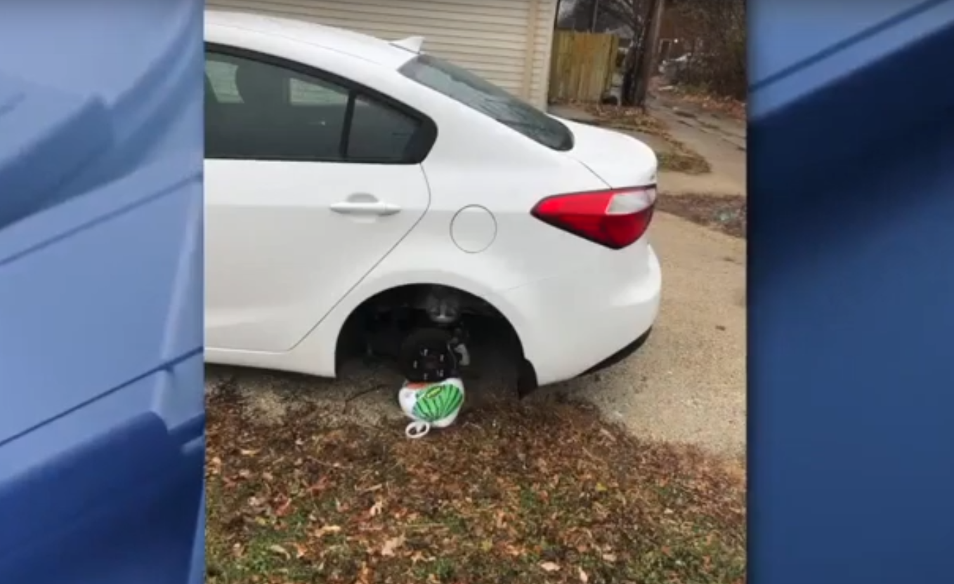 Житель Милуоки Диметриус Трасс недавно переехал в Милуоки (штат Висконсин, США) и за пару дней до Дня благодарения вышел из дома, чтобы отправиться на работу. Каково же было его удивление, когда вместо одного из колес он увидел пакет с мороженой индейкой. Видимо, вор решил, что это будет славная шутка. Ведь в Америке принято на День благодарения запекать праздничную индейку.