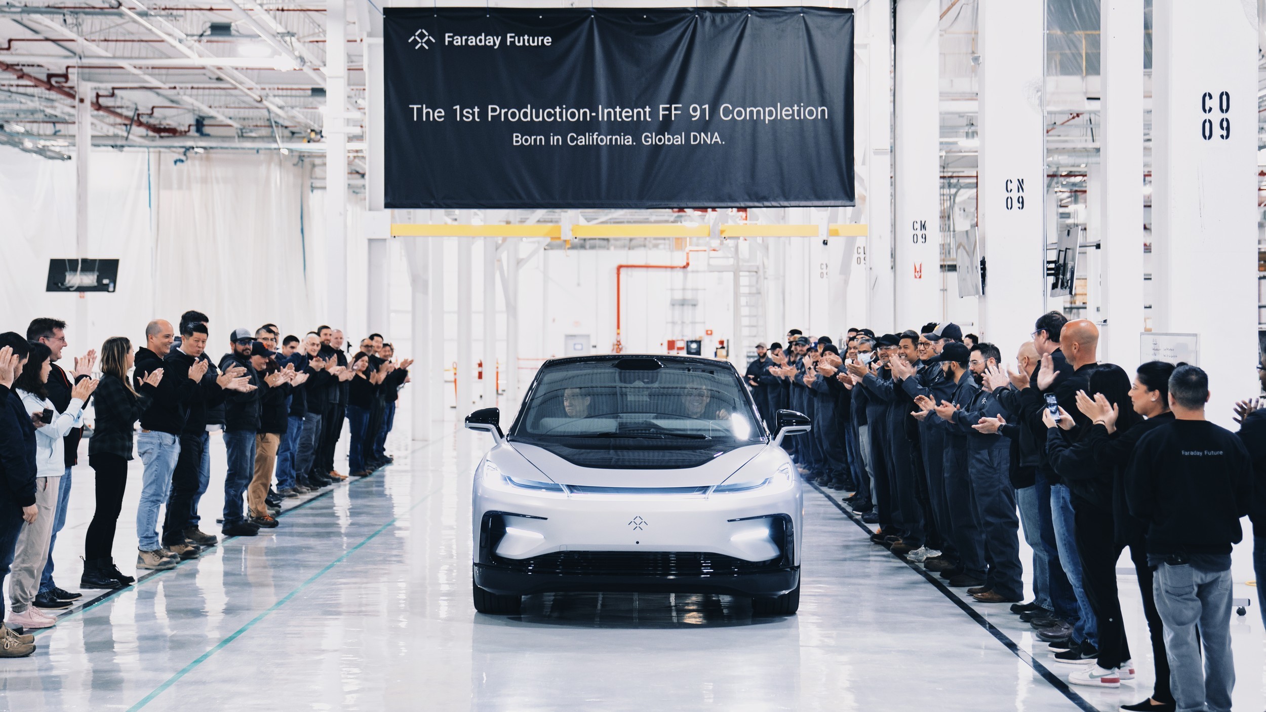 Производство FF 91 планировалось запустить в конце 2017 года на собственном заводе в штате Невада мощностью 150 тысяч машин в год, но его строительство компания не потянула и перебралась на уже готовую площадку в городе Ханфорд (штат Калифорния), которая раньше принадлежала шинной компании Pirelli. Плановая мощность уменьшилась на порядок, объём инвестиций — в разы (завод в Неваде оценивался в миллиард евро).
