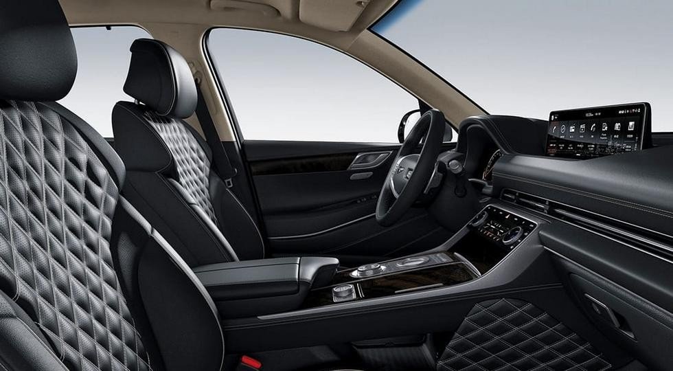 В версии Luxury есть подвеска с электронным управлением и функцией Road Preview, цифровая 3D-приборка и система автоматической дистанционной парковки, а у кресел второго ряда такого SUV имеются электрорегулировки и вентиляция, плюс в отделке салона использовано натуральное дерево. Наконец, топовый Genesis GV80 Elite – это 22-дюймовые диски (у остальных версий – 20”) и шины Michelin, отделка интерьера кожей Nappa и замшей, адаптивные фары, системы автоматического уклонения от попутных машин при перестроении и встречного транспорта.
