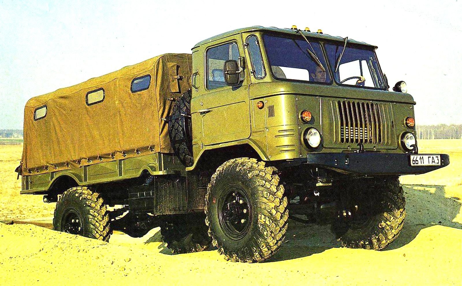 Наиболее массовым советским полноприводным армейским автомобилем двухтонного класса был грузовик ГАЗ-66 с кабиной над двигателем, в котором на тот момент воплотились передовые для отечественной автомобильной промышленности конструктивные решения. В течение более чем четырех десятилетий он существовал в прототипах и в трёх серийных поколениях с многочисленными исполнениями.