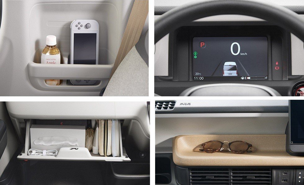 Интерьер практически полностью новый. «Горба» перед водителем больше нет – приборку переместили ниже, кроме того, она теперь цифровая. Полка со стороны пассажира отныне расположена над дефлекторами обдува и блоком управления климат-контролем, а не под ними. У машин на фирменных фото передние кресла сделаны в виде единого дивана, хотя для модели предыдущего поколения были предусмотрены еще и привычные раздельные сиденья. Также в Honda заявили об улучшенной шумоизоляции.