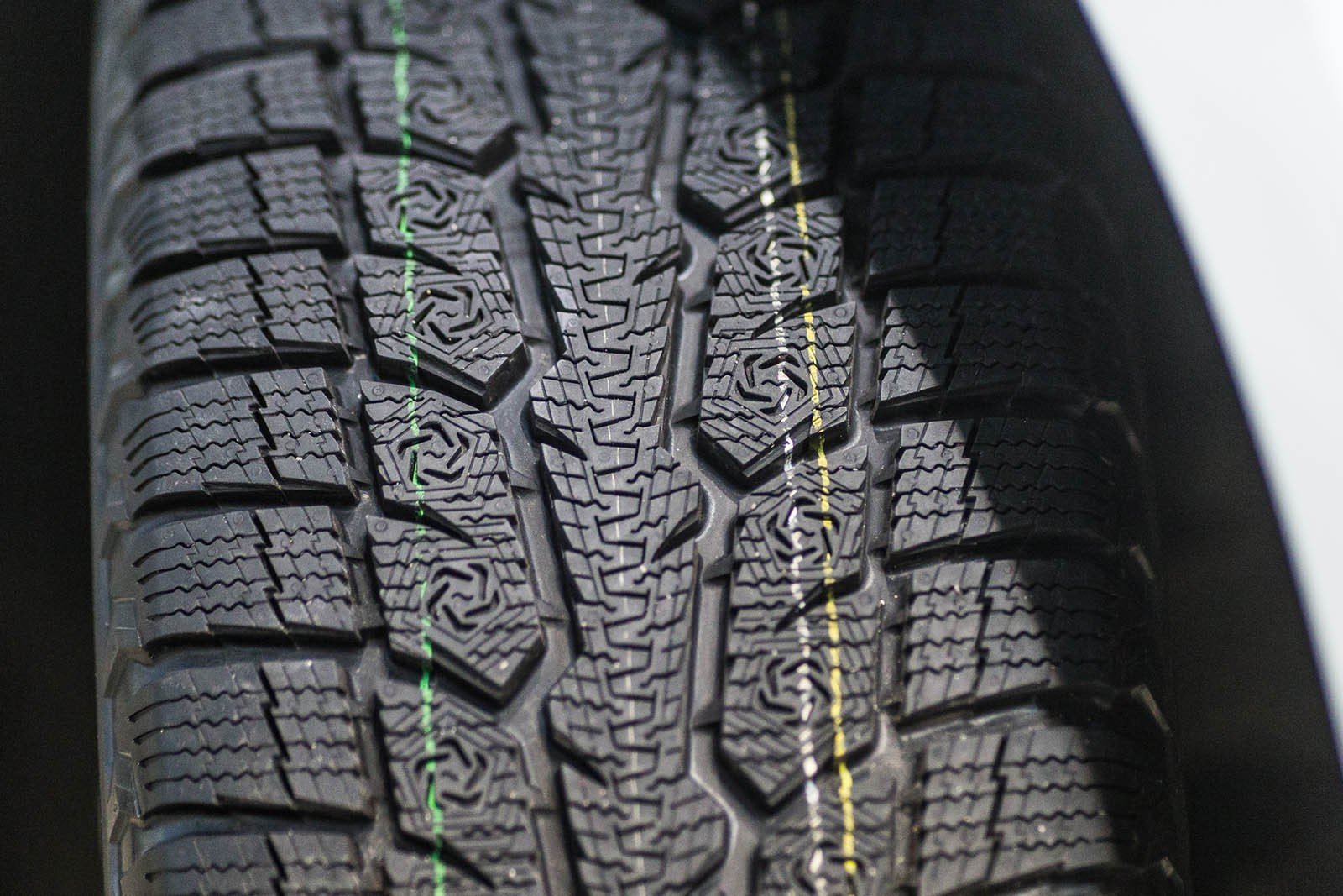 Симметричный направленный протектор шины Observe GSi-6 представляет собой эволюцию решений, заложенных в предыдущей модели GSi-5. Сразу бросается в глаза стремление разработчиков увеличить количество сцепных кромок и плотность протектора. Центральное ребро вместо относительно ровных продольных краев получило зазубренные стреловидные выступы, и это не только закономерно увеличило сцепные свойства, но повысило стабильность ребра при поперечных нагрузках в поворотах и во время маневров, а также оптимизировало пятно контакта. В середине ребра по всей длине находится непрерывная синусоидальная ламель, отдаленно напоминающая след от маятника; схожее решение использовалось и в предыдущей шине, но тогда ламель местами прерывалась, а ее очертания были менее острыми. По обеим сторонам центральной ламели находятся многочисленные перпендикулярные прямые и зубчатые канавки – важно, что ни один такой элемент не прорезает ребро насквозь, тем самым сохраняя его высокую плотность. Сочетание всех приведенных решений позволило существенно улучшить реакции автомобиля на руление, а также разгонно-тормозную динамику.