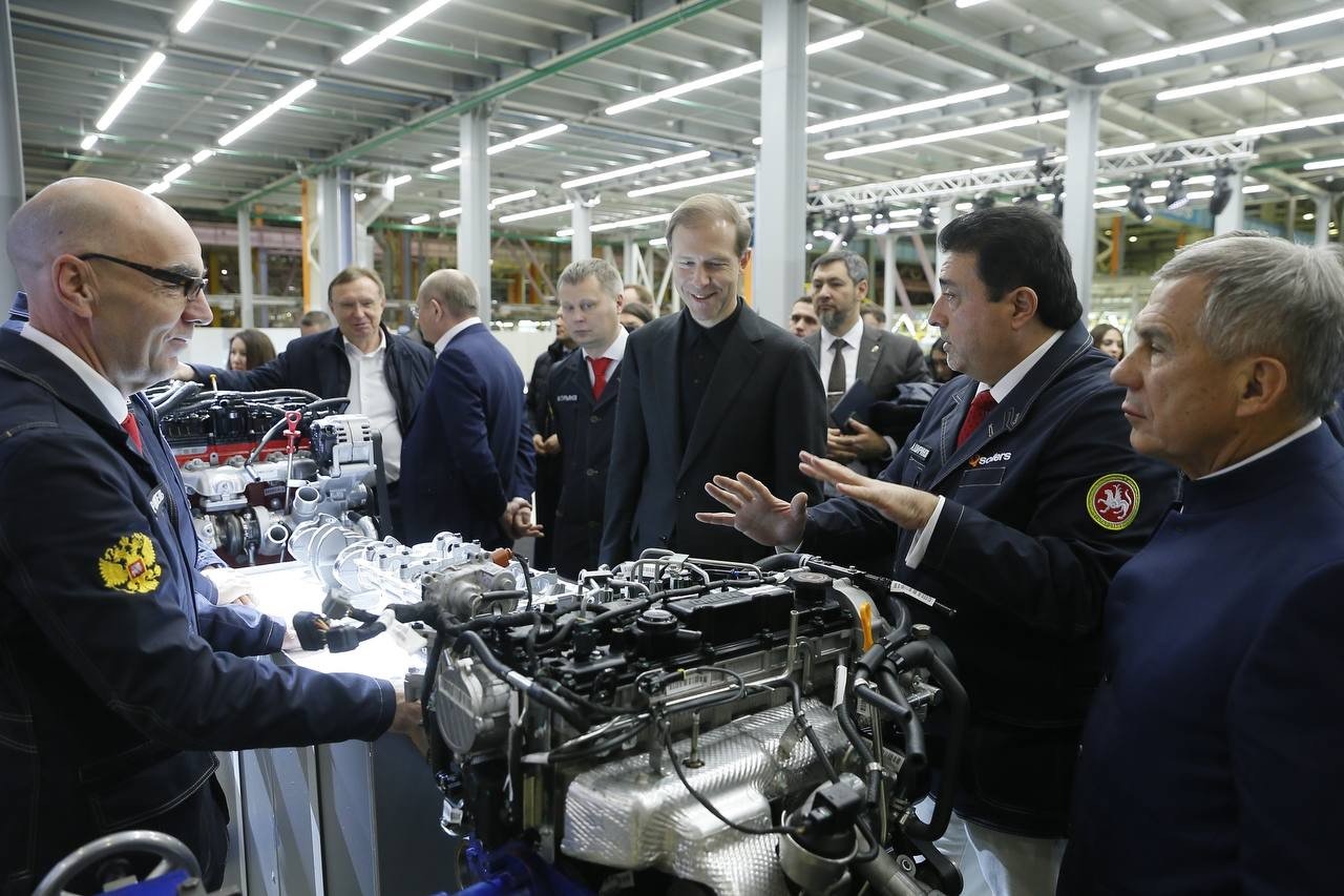 26 ноября 2022 года, завод Соллерс Алабуга. Адиль Ширинов показывает вице-премьеру Денису Мантурову новый дизельный двигатель.