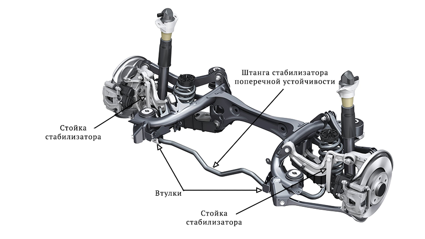 Первые автомобили, использующие стабилизатор поперечной устойчивости для уменьшения кренов кузова в повороте, появились еще в 20-х годах ХХ века. Стабилизатор (далее для простоты и краткости – СПУ) практически всегда, за редкими исключениями, представляет собой П-образную балку, отформованную из толстого стального прута или трубы, работающую по принципу скручиваемого торсиона (упругого элемента). На большинстве машин он имеется как минимум на передней оси, но нередко встречается и второй – на задней. СПУ «полужестко» связывает друг с другом правую и левую части подвески автомобиля, будучи своими концами прикрепленным (непосредственно или через промежуточные шарниры) к симметричным деталям – обычно к внешним корпусам амортизаторных стоек на подвеске типа MacPherson или к нижним рычагам у двухрычажек (и опять же у MacPherson). Несмотря на форму в виде огромной условной буквы «П», с точки зрения физики стабилизатор – простая пружина.