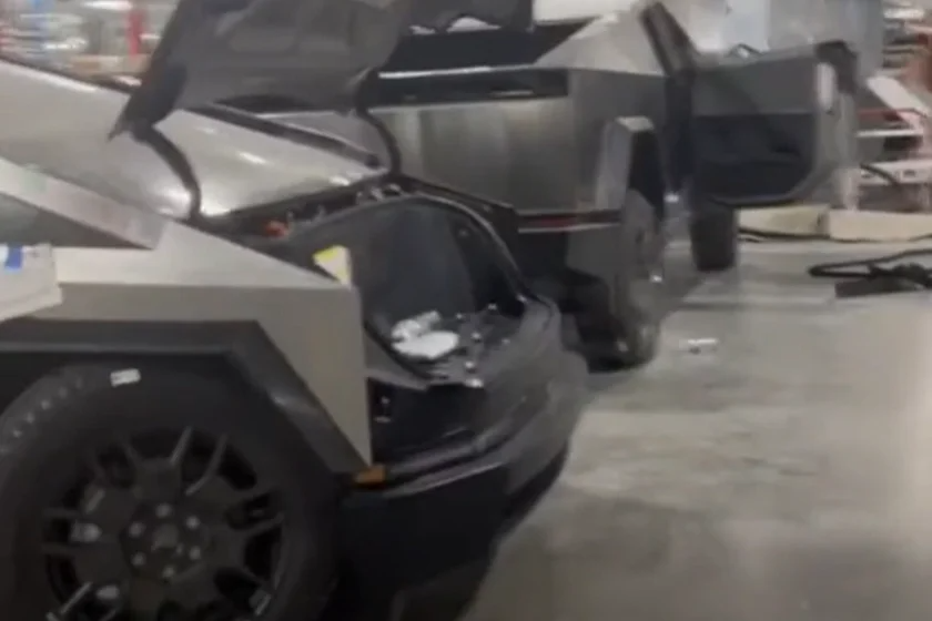 Відео за участю одразу трьох Cybertruck знято на заводі в Tesla у Техасі, де нещодавно розпочалося виробництво довгоочікуваної новинки. Усі три автомобілі з піднятими капотами, під якими розмістився міні-багажник. Цікаво, що спочатку передбачалося, що місця для багажу під капотом пікапа не буде зовсім.