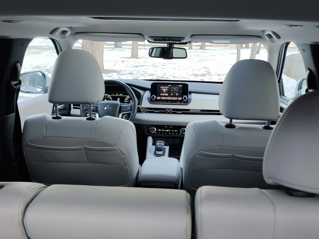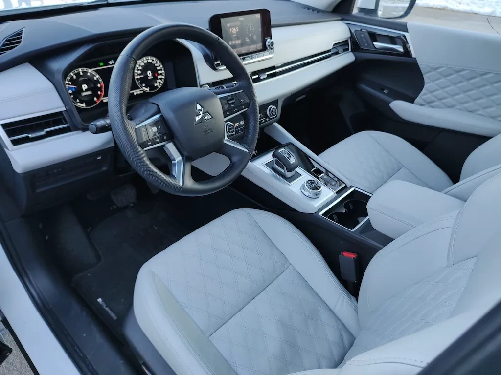 В салоні дійсно ошатно і виглядає він солідно. Стильний дизайн, гарні матеріали, сучасні компоненти і дуже приємна за звучанням акустика Bose на 10 динаміків. Дійсно, змінився не тільки дизайн, але й концепція, адже тут все помітно відрізняється від третього покоління Outlander. Ошатний зовнішний вигляд досягається не лише вставками з чорного лакованого пластику, як раніше (хоча тут він теж є), але й щедрим використанням шкіряного оздоблення, цифровою панеллю приладів діагоналлю 12,3 дюйми (навіть більше, ніж мультимедіа екран!) з чіткою графікою, лаконічним оформленням центральної консолі. Хоча разом з тим особисто мені не вистачає витонченності в деяких дрібних деталях, але можливо я занадто прискипливий.