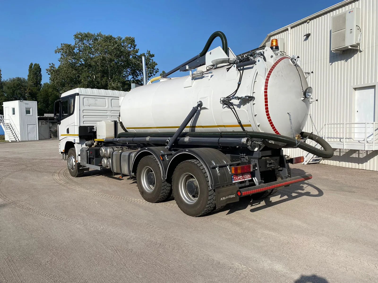 Кременчуцький завод комунальної техніки “Альфатекс” днями представив чергову новинку на тривісному шасі SHACMAN X3000. Це мулососний автомобіль підвищеної продуктивності АТ MВ-0802. Він оснащений цистерною ємністю 10 кубометрів, а також вакуумним насосом продуктивністю 740 м куб./год.