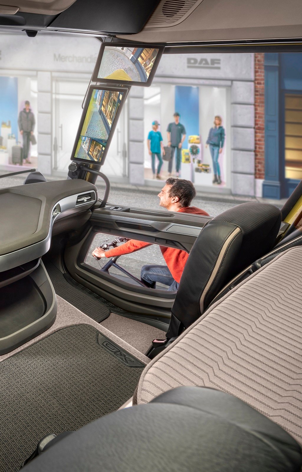 “Міжнародна вантажівка 2023 року” відрізняється й передовим рівнем безпеки. Прекрасну оглядовість з робочого місця водія досягається завдяки більшій площі скління, нижчим розташуванням кабіни, а також такими корисними рішеннями як додаткове вікно у дверях праворуч (DAF Corner View) та система камер замість зовнішніх дзеркал (DAF View System).