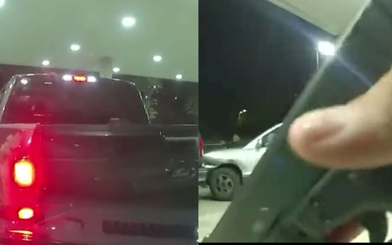 Даже не вытащив пистолет из горловины бензобака, водитель сдал назад, ударив полицейскую машину.