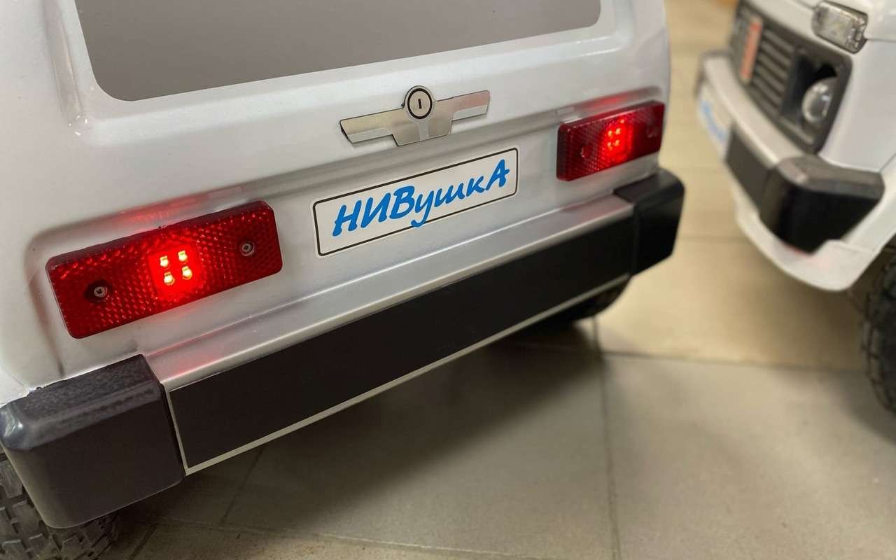 Мощность НИВушки составляет 250 Ватт, или 0,34 л.с., чего вполне достаточно для разгона до 6 км/ч. Ездить детский внедорожник может и вперед, и назад. В оснащение входят мультируль, фары, задние фонари, система автоматического торможения и аварийной остановки, а также надувные резиновые шины.