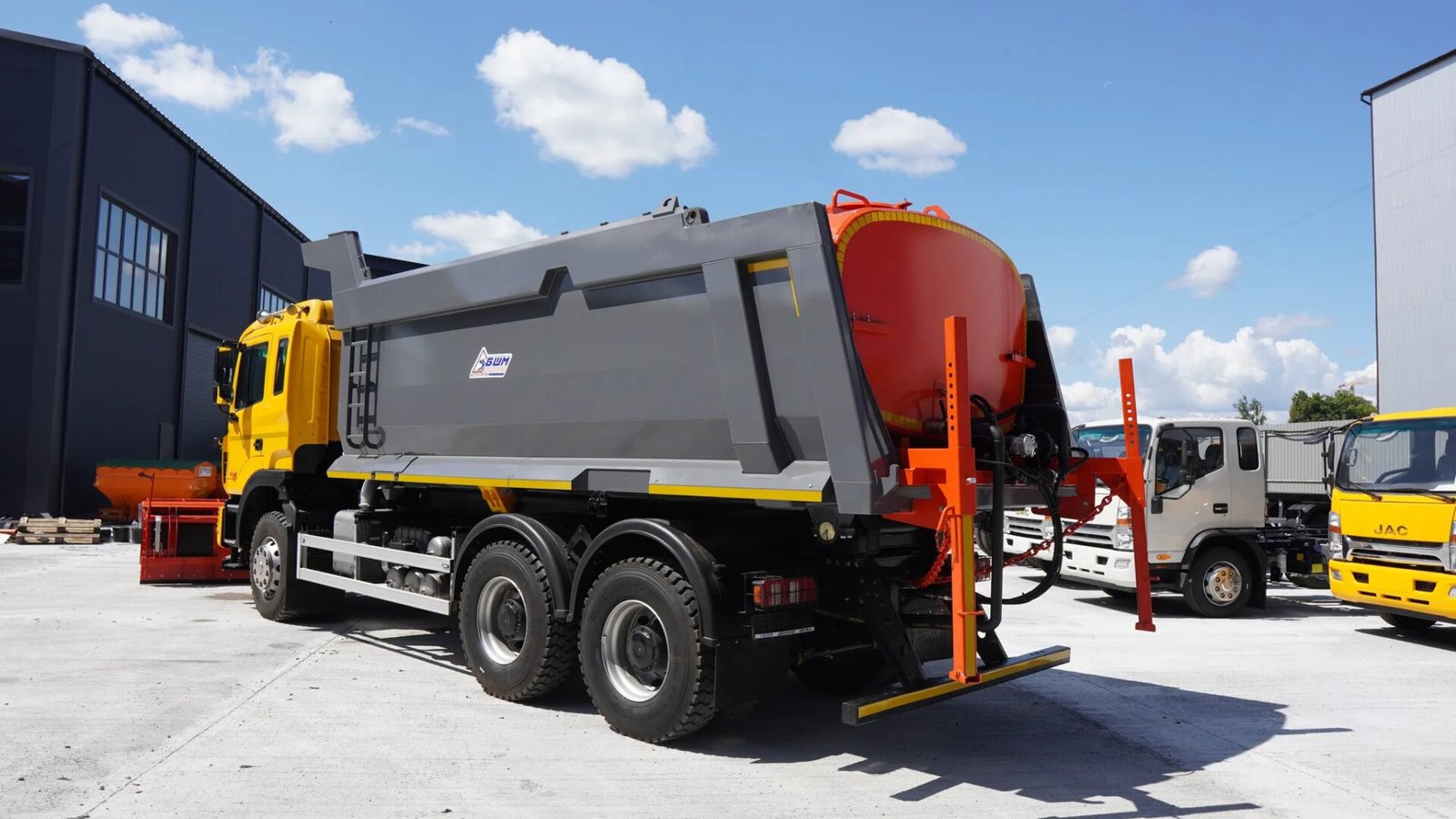 Група компаній «Будшляхмаш» днями виготовила та відправила замовнику нову комбіновану дорожню машину – МДКЗ 31-38. Вона відрізняється тим, що зроблена на шасі великовантажного самоскида JAC N350 (6х4).