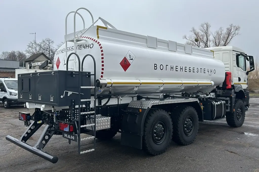 Сьогодні в Україні користуються попитом автопаливозаправники на повнопривідних шасі. І тому свіжий приклад – надмістка модель АПЗ-15, виготовлена Заводом спецтехніки «Техкомплект» на базі MAN TGS 33.400 (6х6) й вже передана клієнтові. На машині встановлено 15-кубову цистерну типу «валіза», виконану зі сталі Ст3. Передня та задня стінки зроблені опуклими для зниження гідроудару під час руху. Цистерна має три секції – дві для дизпалива та одну для бензину.